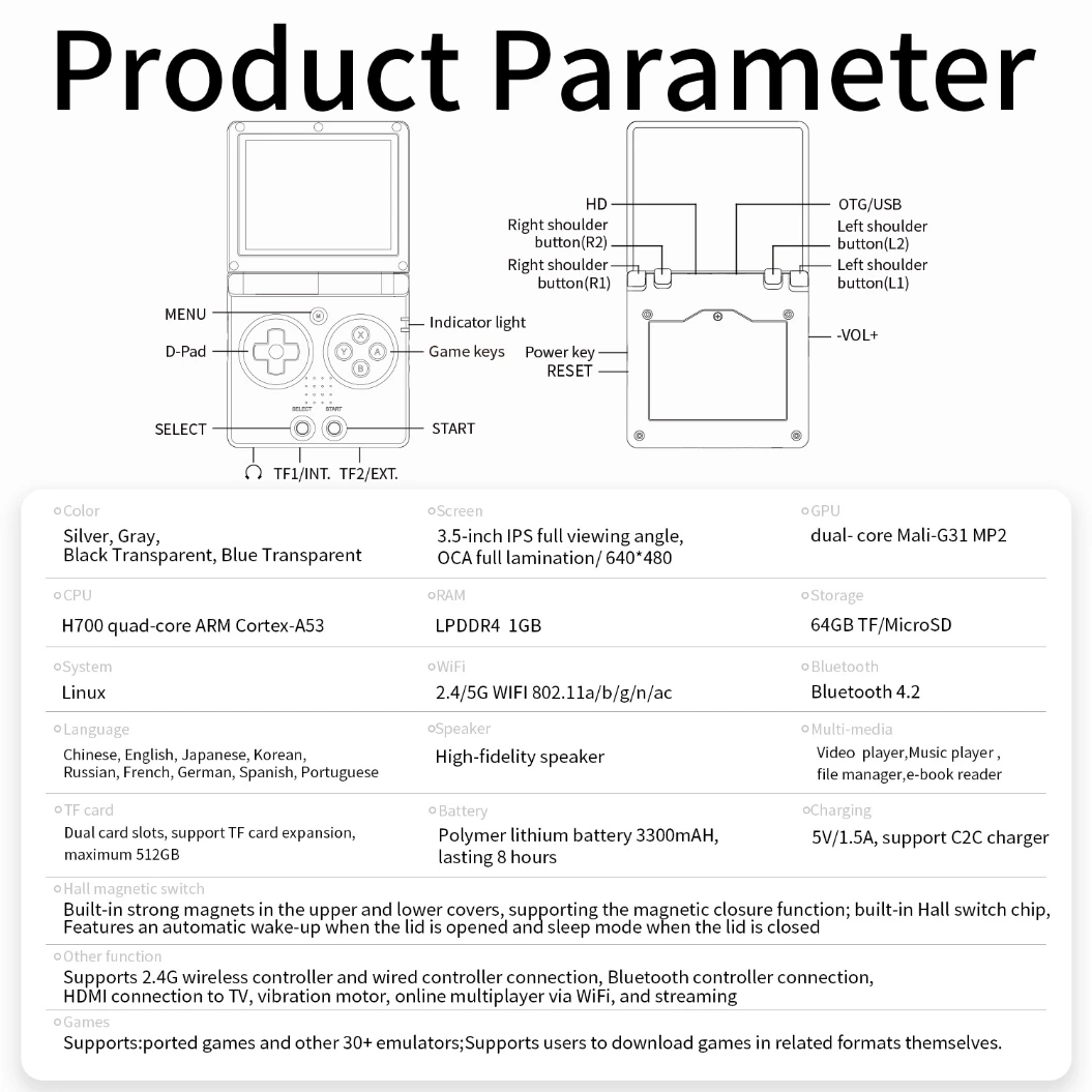 Anbernic RG 35XXSP Foldable Retro Handheld Game Console